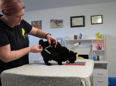 Depending on how your pet allows, we will try to assess all the joints and muscles we can. It is important to not only find the primary problem, but also any secondary or compensatory problems that may be present.